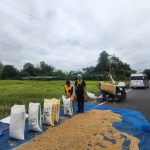 ประชาสัมพันธ์การนำข้าวเปลือกที่เก็บเกี่ยว ตากบนพื้นผิวการจราจร