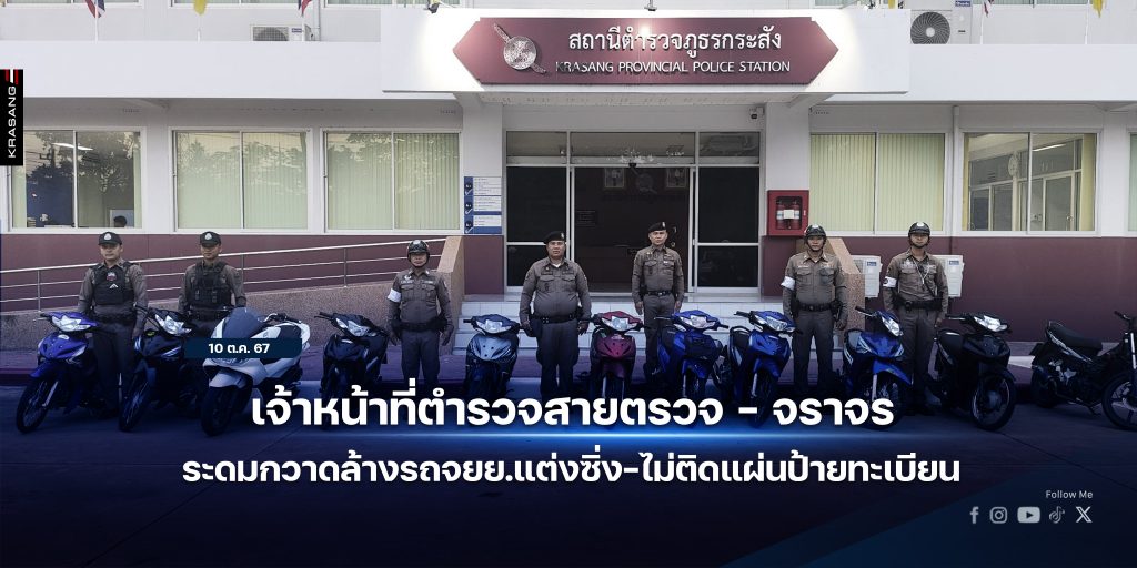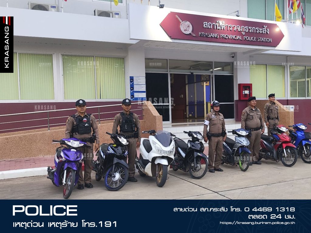 วันที่ 10 ต.ค. 2567 พ.ต.อ.ธีรพล ยมนา ผกก.สภ.กระสัง มอบหมายให้พ.ต.ท.ธัชพล ชิณวงศ์ รอง ผกก.ป.สภ.กระสัง, พ.ต.ท.ชูเกียรติ ปัดตาเทสัง สวป.สภ.กระสัง พร้อมด้วย ร.ต.อ.สมนึก นะลาหนองแวง ร้อยเวร 20 ,ร.ต.ต.จักร งามแฉล้ม ร้อยเวร 60 พร้อมสายตรวจจักรยานยนต์ และสายตรวจจราจรระดมกวาดล้างตรวจยึดรถจักรยานยนไม่ติดแผ่นป้ายทะเบียน