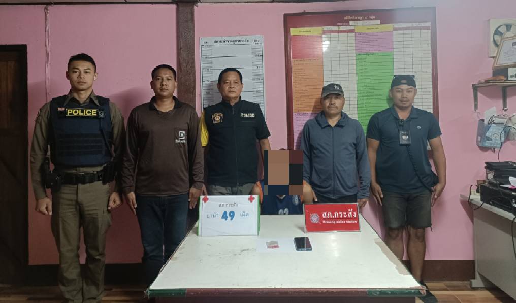 นายจักรตุพล อายุ 28 ปี ในข้อหาจำหน่ายและเสพยาเสพติดประเภท 1 (ยาบ้า) พร้อมของกลางยาบ้า 49 เม็ด และโทรศัพท์มือถือ 1 เครื่อง