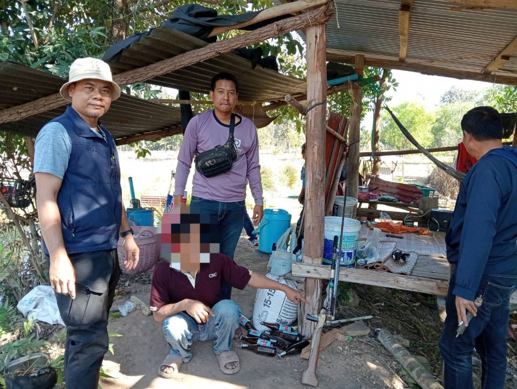 ของกลาง: อาวุธปืนอัดลมยาวชนิดประกอบขึ้นเอง จำนวน 1 กระบอก