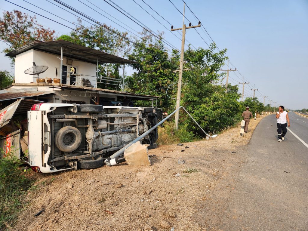 เมื่อวันที่ 20 มีนาคม 2568 เวลาประมาณ 15.30 น. เจ้าหน้าที่ตำรวจได้รับแจ้งจากศูนย์วิทยุ 191 ว่าเกิดอุบัติเหตุรถยนต์ตู้ทึบเสียหลักชนเสาไฟส่องสว่างและพลิกคว่ำ บริเวณบ้านโชค ตำบลสูงเนิน อำเภอกระสัง จังหวัดบุรีรัมย์ เจ้าหน้าที่สายตรวจ กระสัง 3 พร้อมผู้ช่วย 30 ลงพื้นที่ตรวจสอบที่เกิดเหตุ พบรถยนต์ตู้ทึบ ยี่ห้อโตโยต้า สีขาว หมายเลขทะเบียน 2ฒย 3794 กรุงเทพมหานคร อยู่ในสภาพตะแคงข้างริมถนน ส่งผลให้เสาไฟส่องสว่างหักเสียหาย 1 ต้น และเสากั้นทางโค้งหัก 1 ต้น อุบัติเหตุครั้งนี้ส่งผลให้มีผู้ได้รับบาดเจ็บเล็กน้อย 1 ราย โดยเจ้าหน้าที่กู้ภัยได้นำตัวส่งโรงพยาบาลกระสังเพื่อทำการรักษา ขณะนี้อยู่ระหว่างตรวจสอบสาเหตุของอุบัติเหตุที่แน่ชัด
