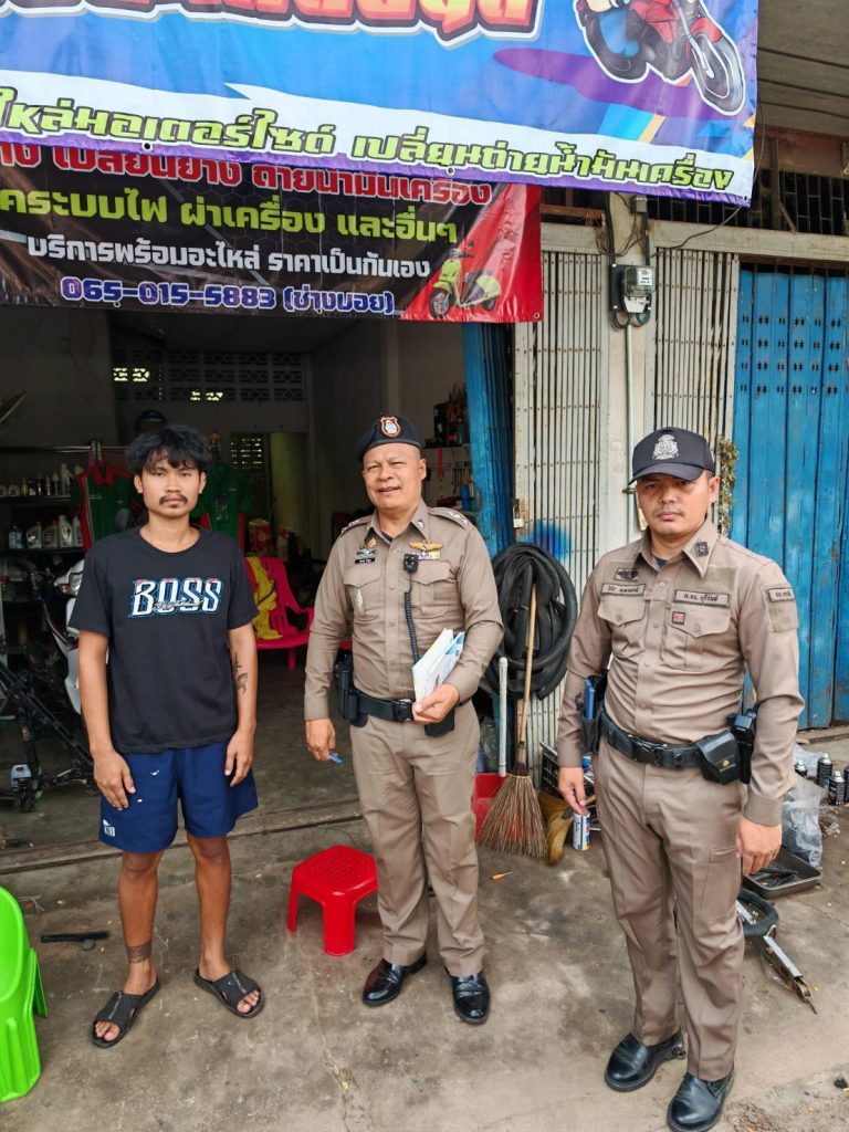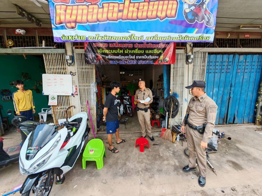 เมื่อวันที่ 20 เมษายน 2568 เวลา 14.00 น. พ.ต.ท.วรกฤต มั่งมูล สวป.สภ.กระสัง พร้อมสายตรวจรถจักรยานยนต์ ได้ออกตรวจและประชาสัมพันธ์ ขอความร่วมมือร้านซ่อมรถจักรยานยนต์ในพื้นที่ตำบลกระสัง รวม 4 ร้าน ได้แก่ ร้านช่างยา, ร้านช่างเบนซ์, ร้านหงษ์ทองยานยนต์ และร้านหมูทองอะไหล่ยนต์