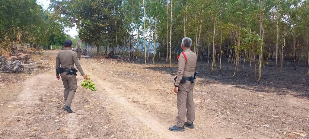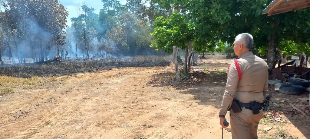 ความเสียหายเบื้องต้น พื้นที่สวนหญ้าประมาณ 1 งานถูกไฟไหม้ ไม่มีทรัพย์สินอื่นเสียหาย เจ้าหน้าที่แนะนำให้ผู้เสียหายแจ้งความร้องทุกข์ต่อพนักงานสอบสวน เพื่อดำเนินการตามกฎหมาย