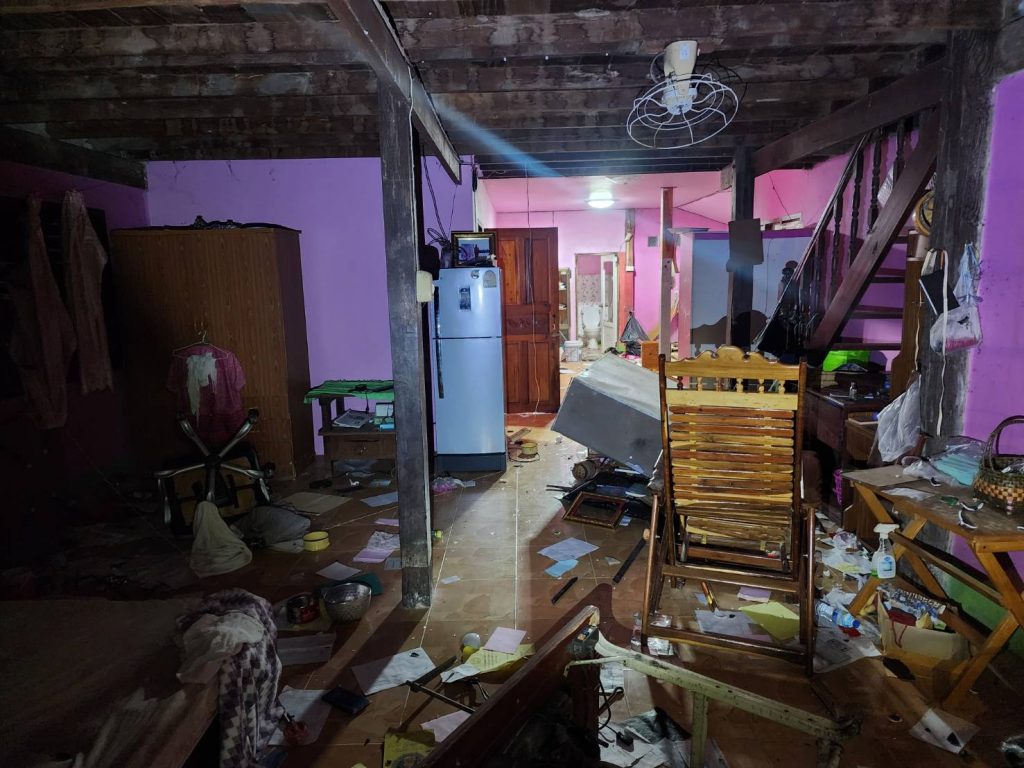 เบื้องต้นพบว่ามีทรัพย์สินภายในบ้านเสียหายหลายรายการ แต่ไม่มีผู้ใดได้รับบาดเจ็บจากเหตุการณ์ดังกล่าว