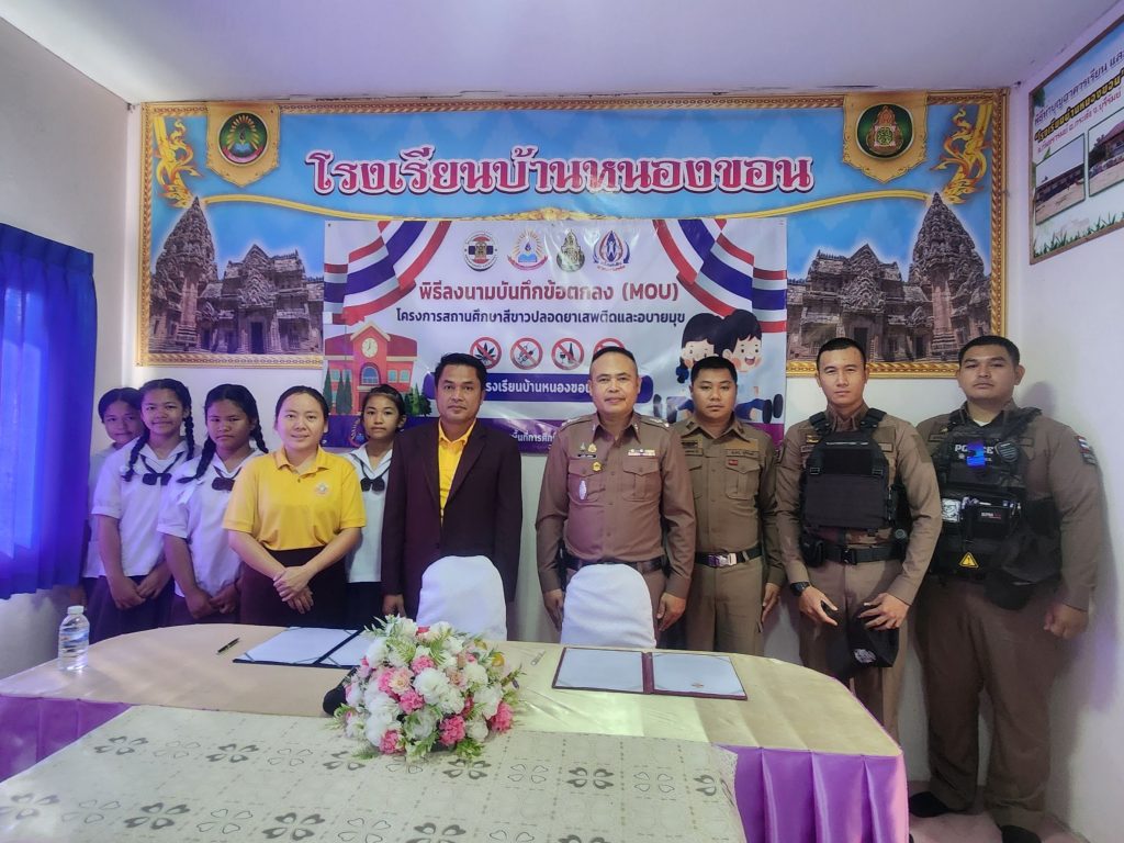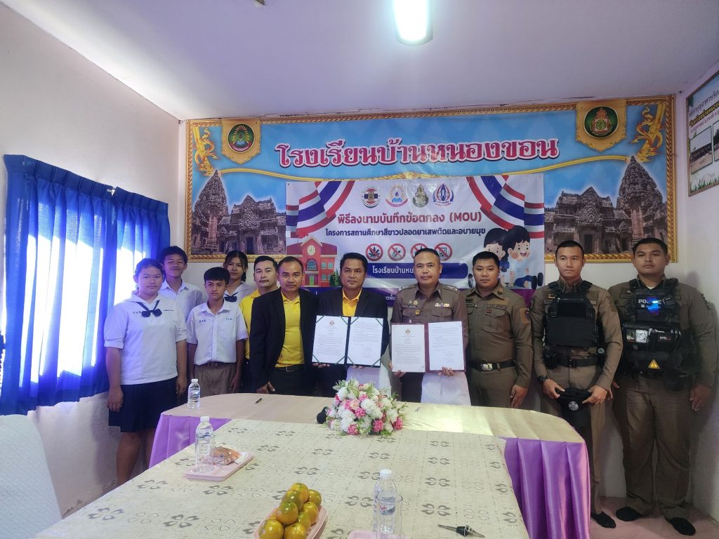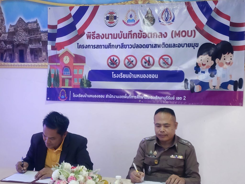 พ.ต.ท.อนุชิต เลไธสง สารวัตรป้องกันปราบปราม (ชุมชนสัมพันธ์) สถานีตำรวจภูธรกระสัง เข้าร่วมลงนามบันทึกข้อตกลงความร่วมมือ (MOU) โครงการโรงเรียนสีขาว ณ โรงเรียนบ้านหนองขอน หมู่ที่ 7 ตำบลกันทรารมย์ อำเภอกระสัง จังหวัดบุรีรัมย์