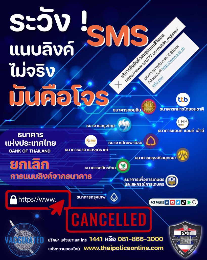 รวมรายชื่อธนาคารที่ยกเลิกการแนบลิงก์ทาง SMS และอีเมล (อัปเดตข้อมูล ณ วันที่ 24 มีนาคม 2566) ถ้าเจอ SMS หรืออีเมลแนบลิงก์ อ้างว่ามาจากธนาคารเหล่านี้ คิดไว้เลยว่าโดนหลอกแน่ ๆ ห้ามคลิก !!! นะคะ