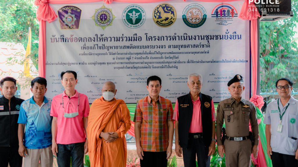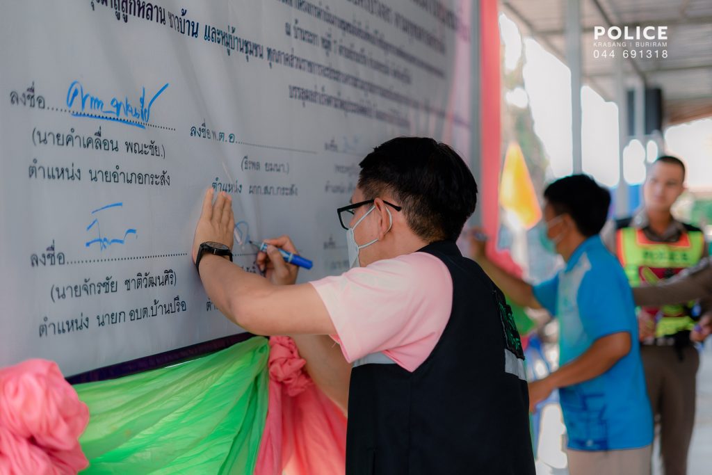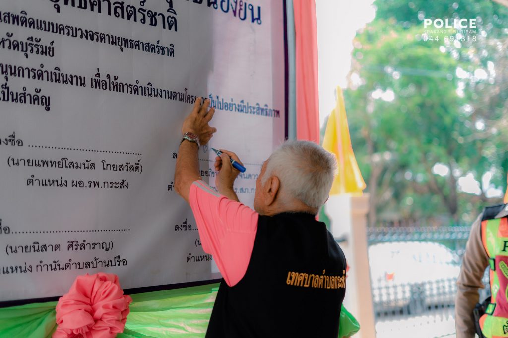 พร้อมด้วยชุดปฏิบัติการชุมชนยั่งยืน สภ.กระสัง ,เจ้าอาวาสวัดบ้านระกา ,โรงพยาบาลกระสัง ,ประธาน กต.ตร.สภ.กระสัง ,นายกองค์การบริหารส่วนตำบล บ้านปรือ ,กำนันตำบลบ้านปรือ ,ผอ.รพ.สต.บ้านเพชร ,ผู้ใหญ่บ้าน,ผู้ช่วยฯ ,เจ้าหน้าที่ อสม.บ้านระกา และคณะกรรมการหมู่บ้านฯ ชาวบ้าน บ้านระกา ร่วมพิธีเปิดโครงการดำเนินงานตามโครงการชุมชนยั่งยืน เพื่อแก้ไขปัญหายาเสพติดแบบครบวงจรตามยุทธศาสตร์ชาติ ร่วมลงนาม MOU และตรวจคัดกรองหาผู้เสพยาเสพติด