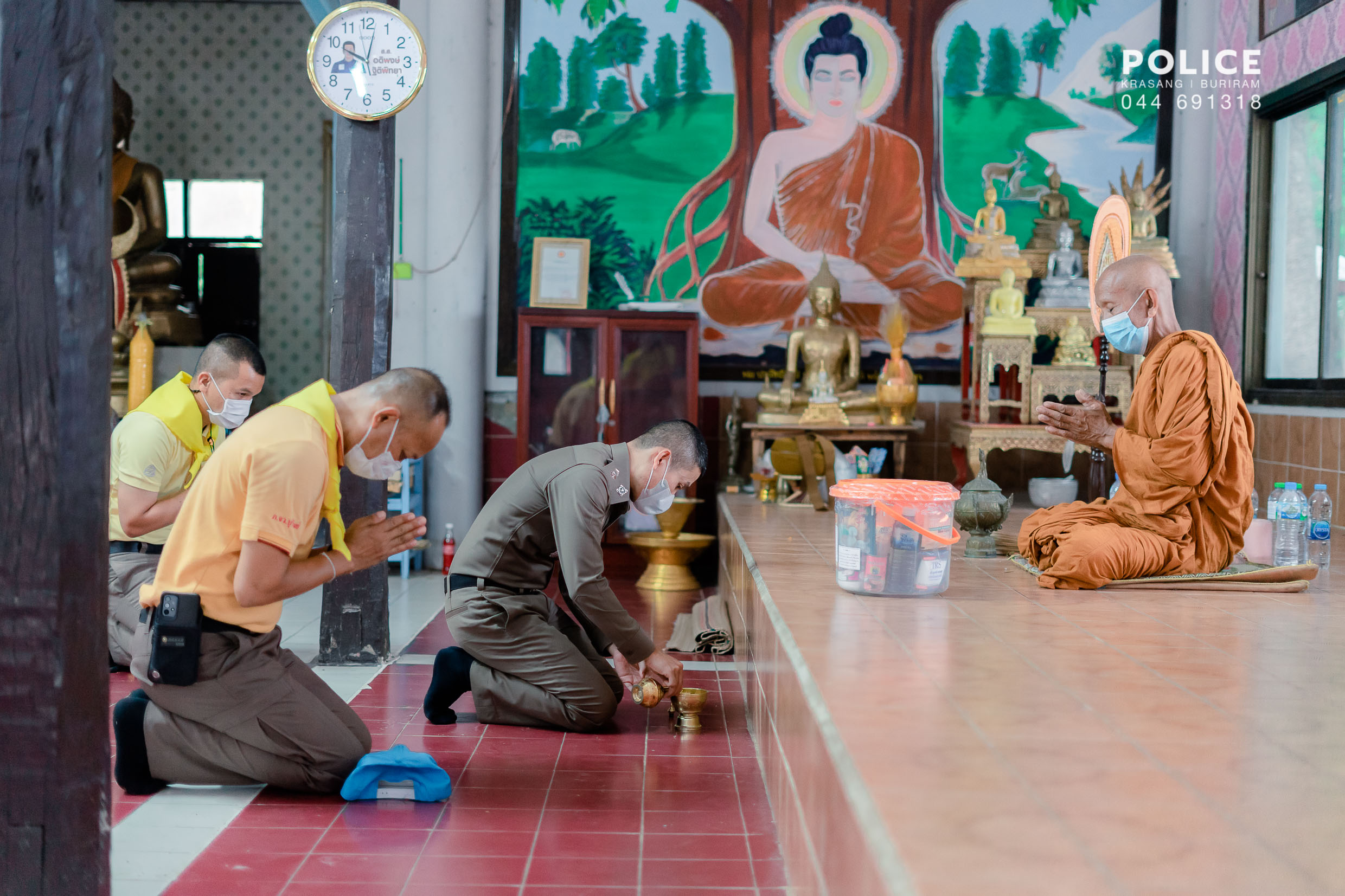 พ.ต.อ.ธีรพล ยมนา ผกก.สภ.กระสัง พร้อมด้วย ชุดจิตอาสา สภ.กระสัง และนักเรียนจิตอาสา รร.กระสังพิทยาคม ดำเนินกิจกรรมจิตอาสาเฉพาะกิจ การออกปฏิบัติหน้าที่ของชุด ชป.กร.ร่วม (เฉพาะกิจ) พระภิกษุที่เคยได้ถวายการวิปัสสนากรรมฐาน / ได้รับพระราชทานพัดยศ ดังนี้