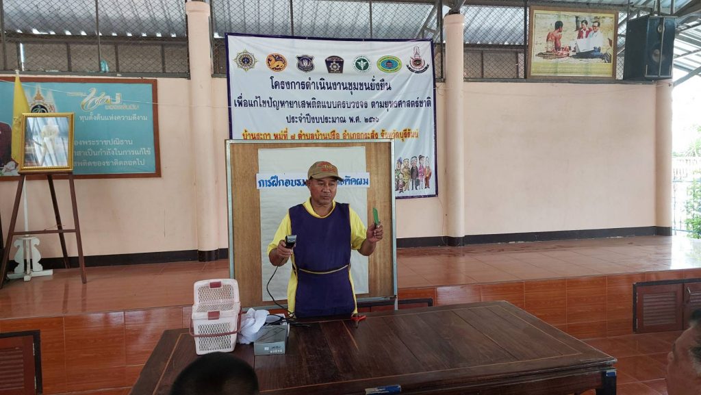 พ.ต.ท.ธัชพล ชิณวงศ์ รอง ผกก.ป.สภ.กระสัง พ.ต.ท.ชูเกียรติ ปัดตาเทสัง สวป.สภ.กระสัง มอบหมายให้ชุดปฏิบัติการชุมชนยั่งยืน สภ.กระสัง ดำเนินการฝึกอบรมอาชีพ ช่างตัดผม ตามหัวข้อกิจกรรมอาชีพบำบัด ณ ศูนย์ปฏิบัติการชุมชนยั่งยืน บ้านระกา ม.7 ต.บ้านปรือ อ.กระสัง จ.บุรีรัมย์