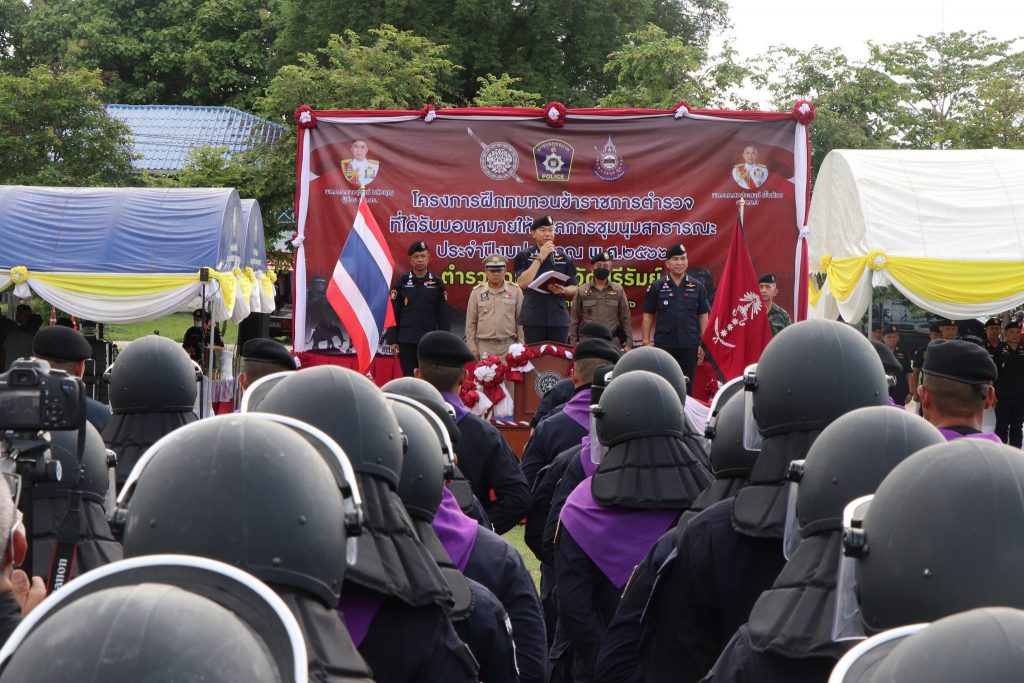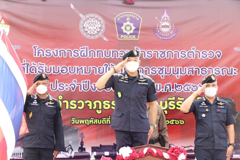 พล.ต.ท.ภาณุรัตน์ หลักบุญ ผู้ช่วย ผบ.ตร. เป็นประธานพิธีปิดการฝึกทบทวนข้าราชการตำรวจซึ่งปฏิบัติหน้าที่ดูแลการชุมนุมสาธารณะ ประจำปีงบประมาณ พ.ศ.2566 กองร้อยควบคุมฝูงชน ตำรวจภูธรจังหวัดบุรีรัมย์