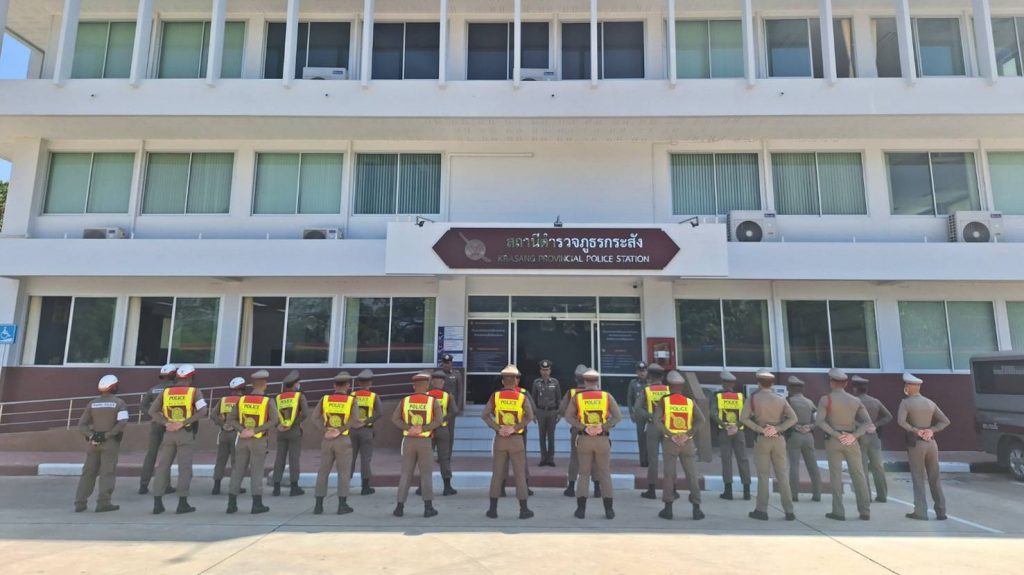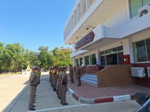สภ.กระสัง จว.บุรีรัมย์ วันที่ 28 พ.ย. 2566 เวลา 10.00 น. พ.ต.อ.ธีรพล ยมนา ผกก.ฯ พ.ต.ท.ธัชพล ชิณวงศ์ รอง ผกก.ป.ฯ พ.ต.ท.ชูเกียรติ ปัตตาเทสัง สวป.ฯ พ.ต.ท.ชินวัส โคนาโล สส.ฯ เรียกแถวข้าราชการตำรวจที่มีหน้าที่ถวายความปลอดภัยสมเด็จพระเจ้าน้องนางเธอ เจ้าฟ้าจุฬาภรณวลัยลักษณ์ อัครราชกุมารี กรมพระศรีสวางควัฒน วรขัตติยราชนารี ในเส้นทางตามแผนเผชิญเหตุในเขตพื้นที่รับผิดชอบ เพื่อตรวจจำนวน เครื่องแต่งกาย ทรงผม พร้อมอุปกรณ์ กำชับให้อยู่ในระเบียบวินัย และถือปฏิบัติตามแผน ถปภ.โดยเคร่งครัด แล้วปล่อยแถวออกวางกำลังประจุดแต่เวลานี้