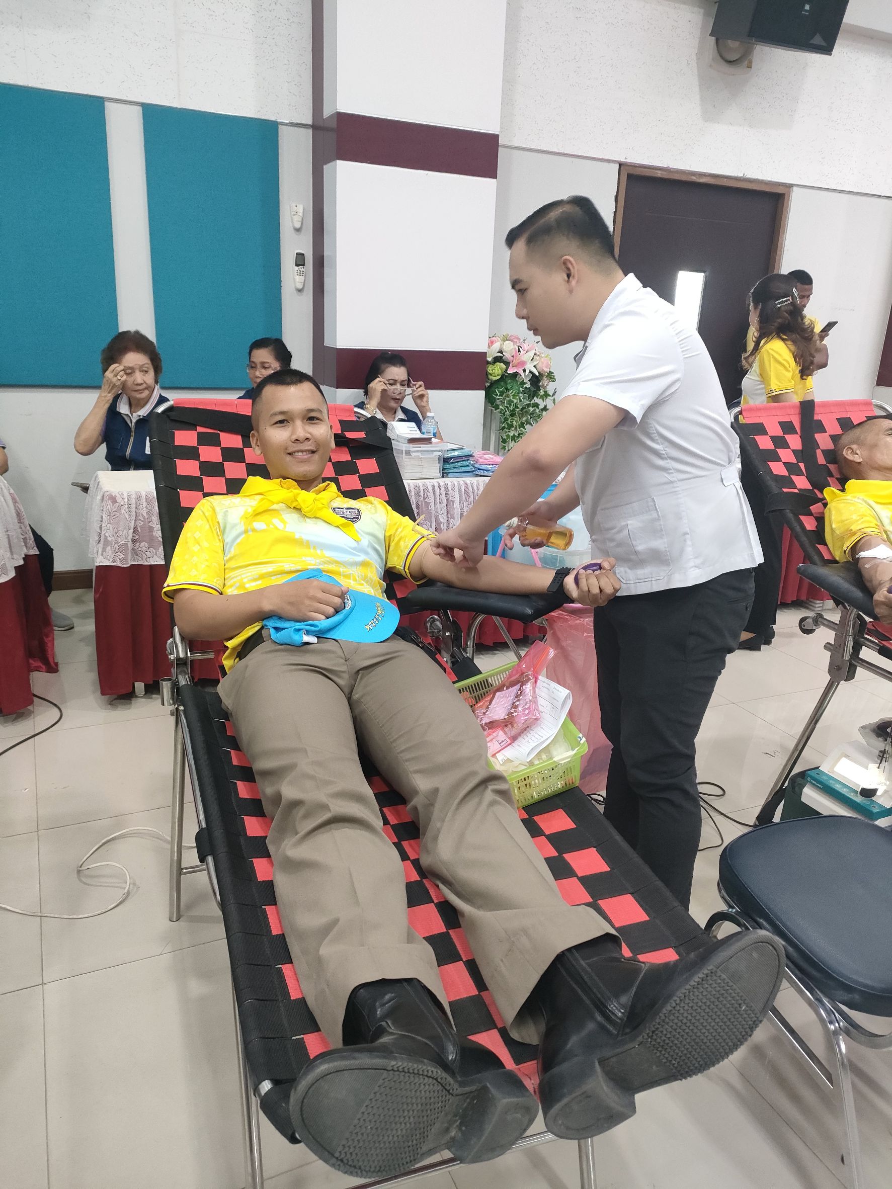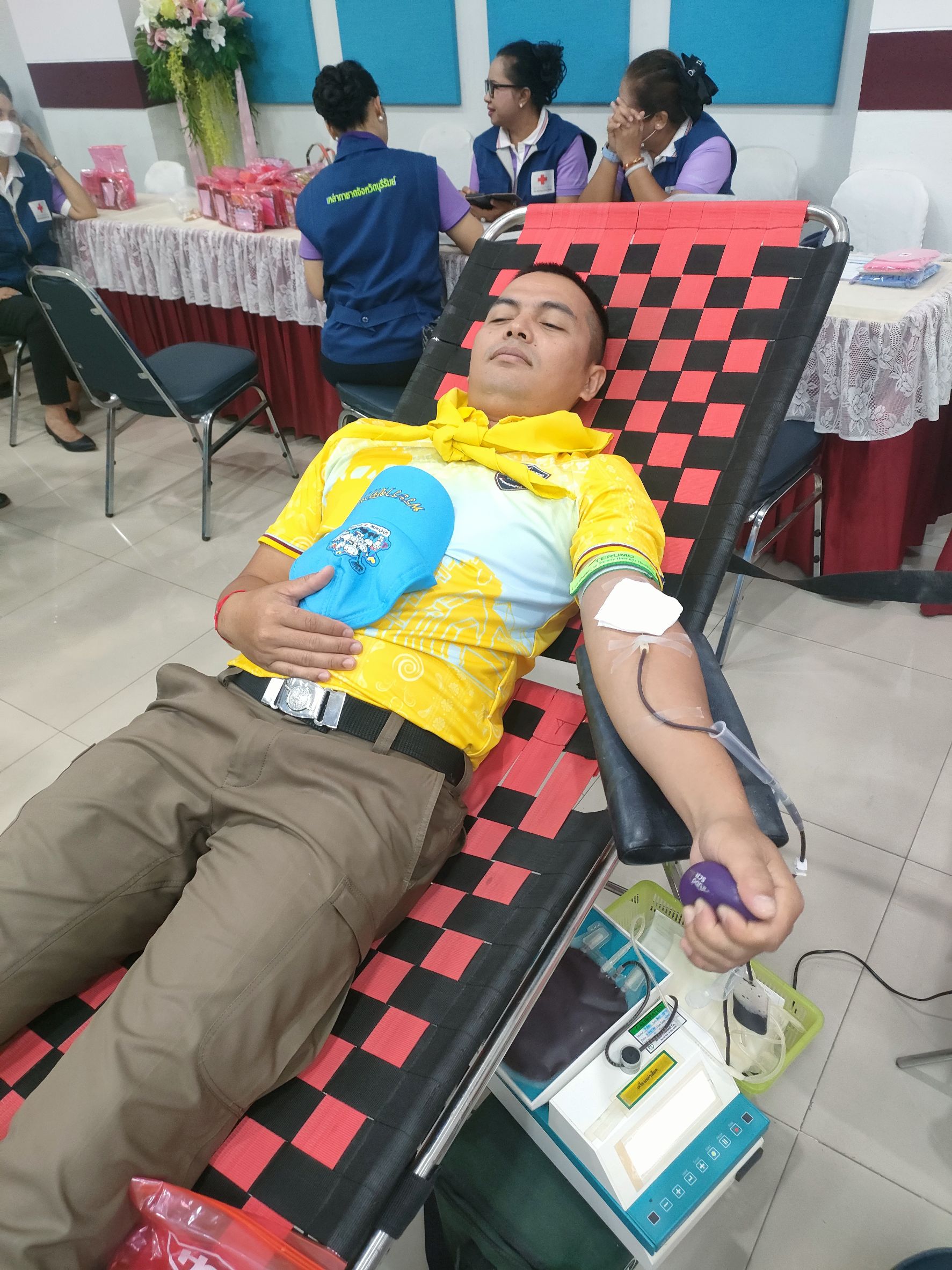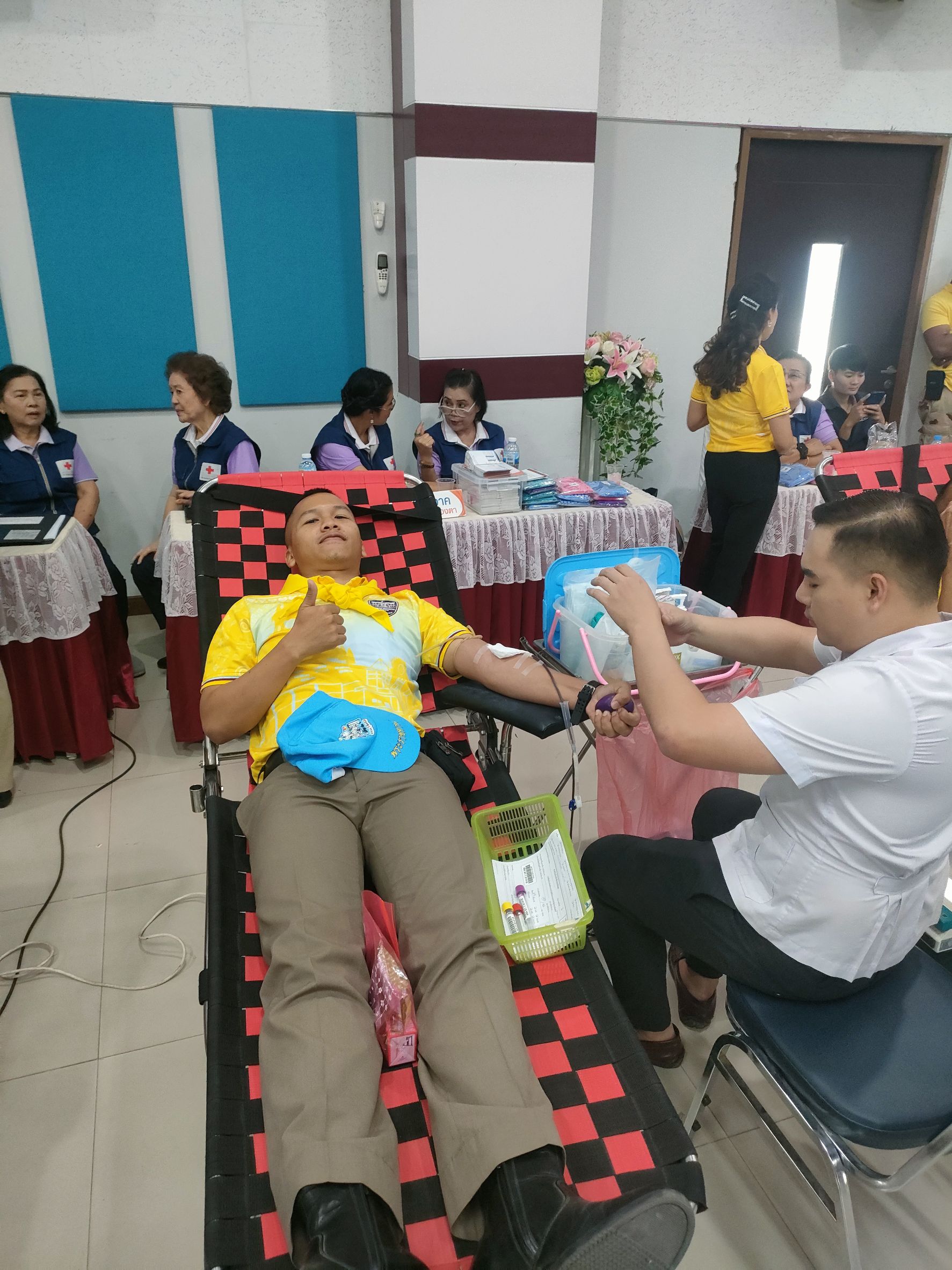มอบหมายให้ ร.ต.อ.วีระชน ปรากฎมาก รอง สว.สส.สภ.กระสัง พร้อมด้วยข้าราชการตำรวจจิตอาสา สภ.กระสัง ร่วมกิจกรรมจิตอาสาบำเพ็ญสาธารณประโยชน์ “โครงการตำรวจภูธรจังหวัดบุรีรัมย์ ร่วมใจ ทำความดี บริจาคโลหิต” ประจำปีงบประมาณ.2567 ตำรวจภูธรจังหวัดบุรีรัมย์ ร่วมกับ เหล่ากาชาดจังหวัดบุรีรัมย์ และ โรงพยาบาลบุรีรัมย์ ร่วมกิจกรรมบริจาคโลหิต ณ หอประชุมชัยจินดา ตำรวจภูธรจังหวัดบุรีรัมย์ อ.เมือง จ.บุรีรัมย์
