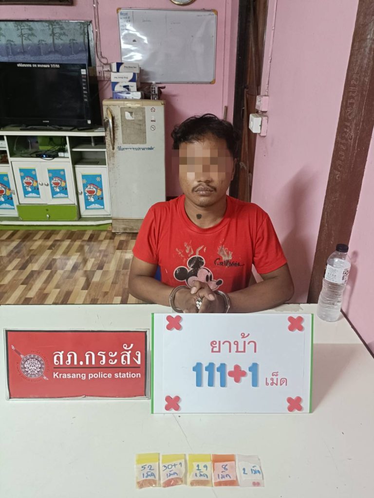 กระทำความผิดฐาน “ทำร้ายร่างกายผู้อื่นจนเป็นเหตุให้ผู้อื่นได้รับอันตรายแก่กายหรือจิตใจ และ เสพยาเสพติดให้โทษประเภท 1 (เมทแอมเฟตามีน) โดยฝ่าฝืนต่อกฎหมาย ” นำตัวผู้ต้องหาพร้อมของกลางส่งพนักงานสอบสวนดำเนินการตามกฎหมายต่อไป