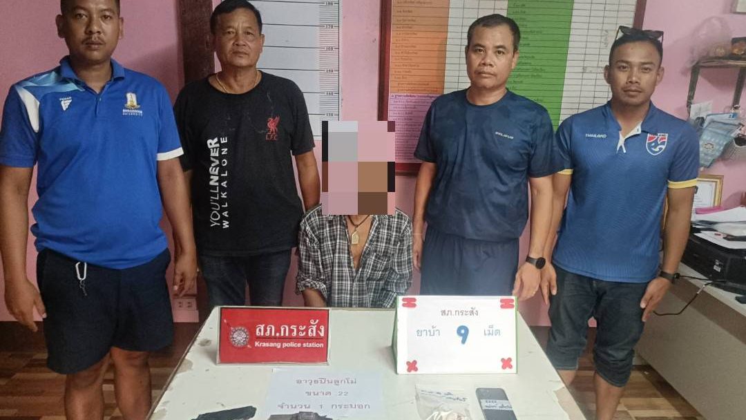 สืบสวน สภ.กระสัง จับกุม 2 ผู้ต้องหาคดียาเสพติดและพนันออนไลน์ ยึดปืนอัดลม-ยาบ้า