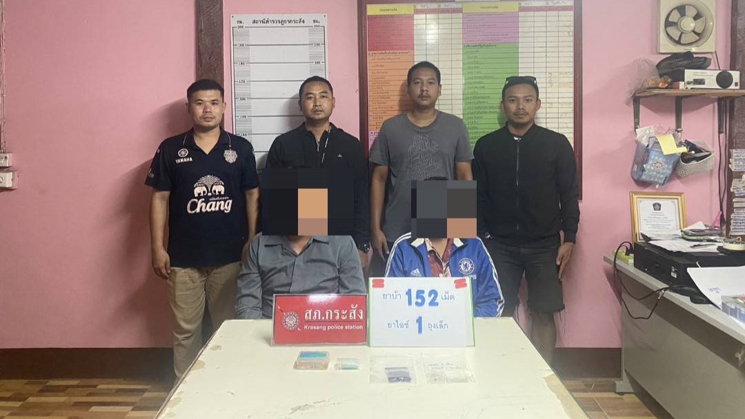 ตำรวจ สภ.กระสัง จับกุม 2 ผู้ต้องหาคดียาเสพติด ยึดยาบ้า 152 เม็ด พร้อมยาไอซ์