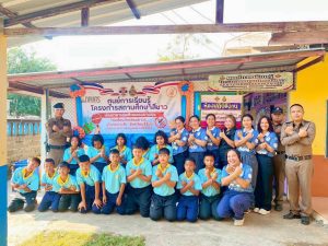 สภ.กระสัง ร่วมรักษาความสงบเรียบร้อยและร่วมเป็นเกียรติพิธีทอดผ้าป่าสามัคคี โรงเรียนบ้านเมืองไผ่