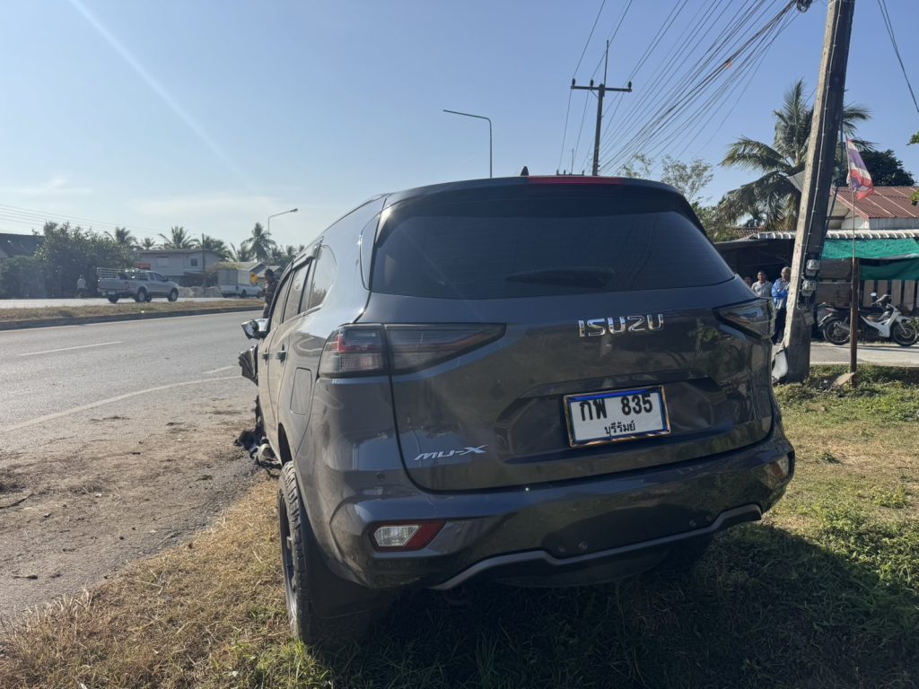 รถยนต์เสียหลักเฉี่ยวชนเสาไฟฟ้า คนขับบาดเจ็บเล็กน้อย สาเหตุยางระเบิด