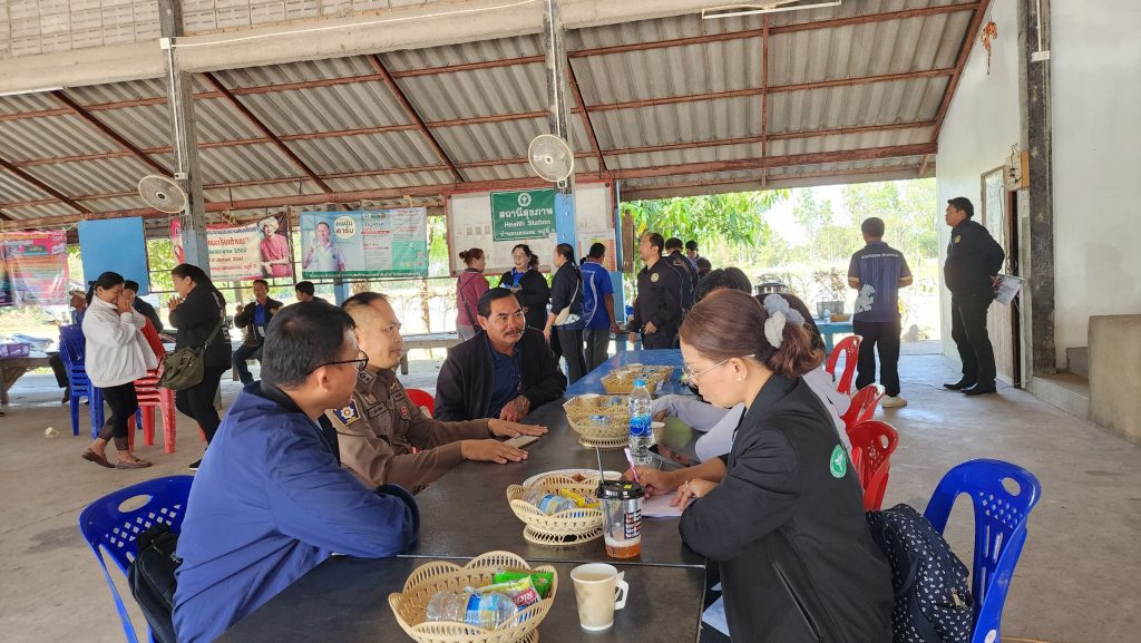 นายนภันต์ โพธิ์วิไลศิริกุล กำนันตำบลกระสังคณะผู้ใหญ่บ้าน และผู้ช่วยผู้ใหญ่บ้านในเขตพื้นที่ ต.กระสังเจ้าหน้าที่จากสาธารณสุขในพื้นที่